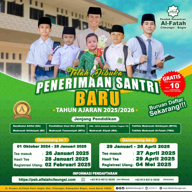 Berita & Artikel : Ponpes Al-Fatah Cileungsi Telah Membuka Penerimaan Santri Baru Tahun Ajaran 2025/2026.